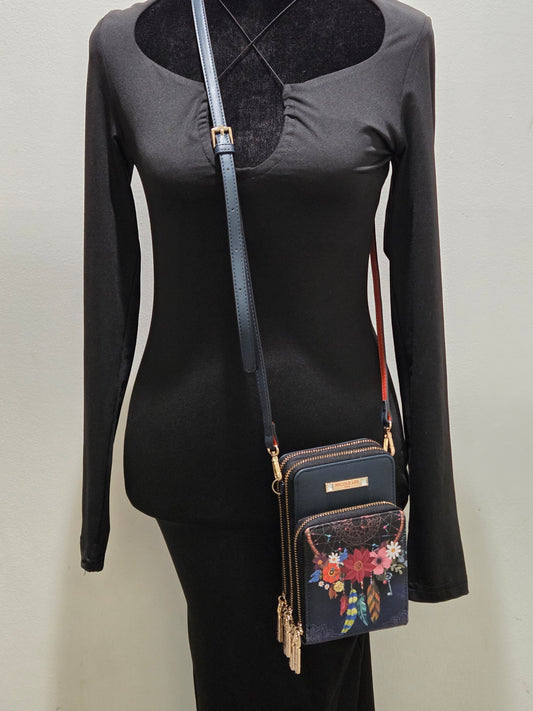 Flap Crossbody bag with card holder Center zip pocket with 2 sections L 10"x W...