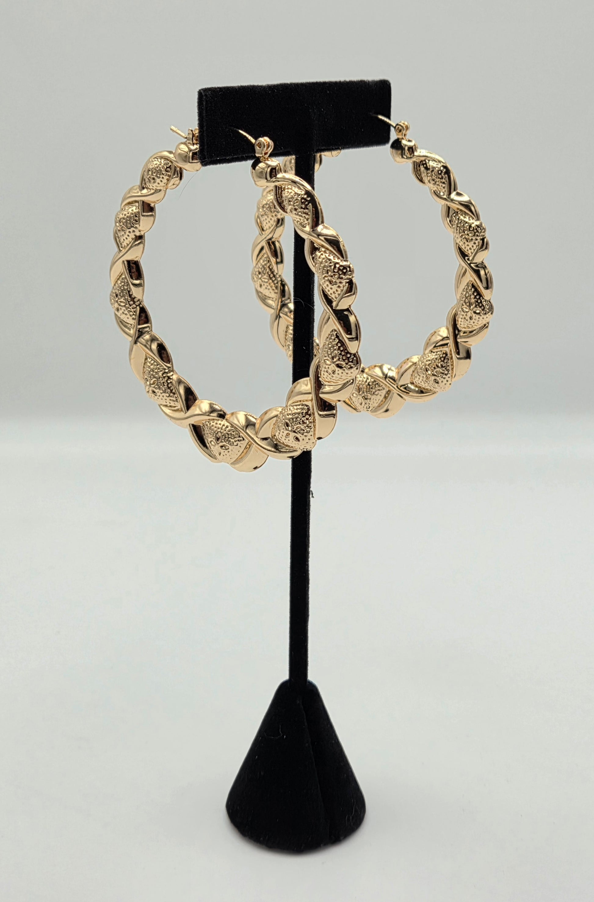 Large statement hoop earring with an elegant braided design, blending smooth and textured finishes.