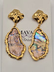 Abalone shell geometric titanium steel earrings.
